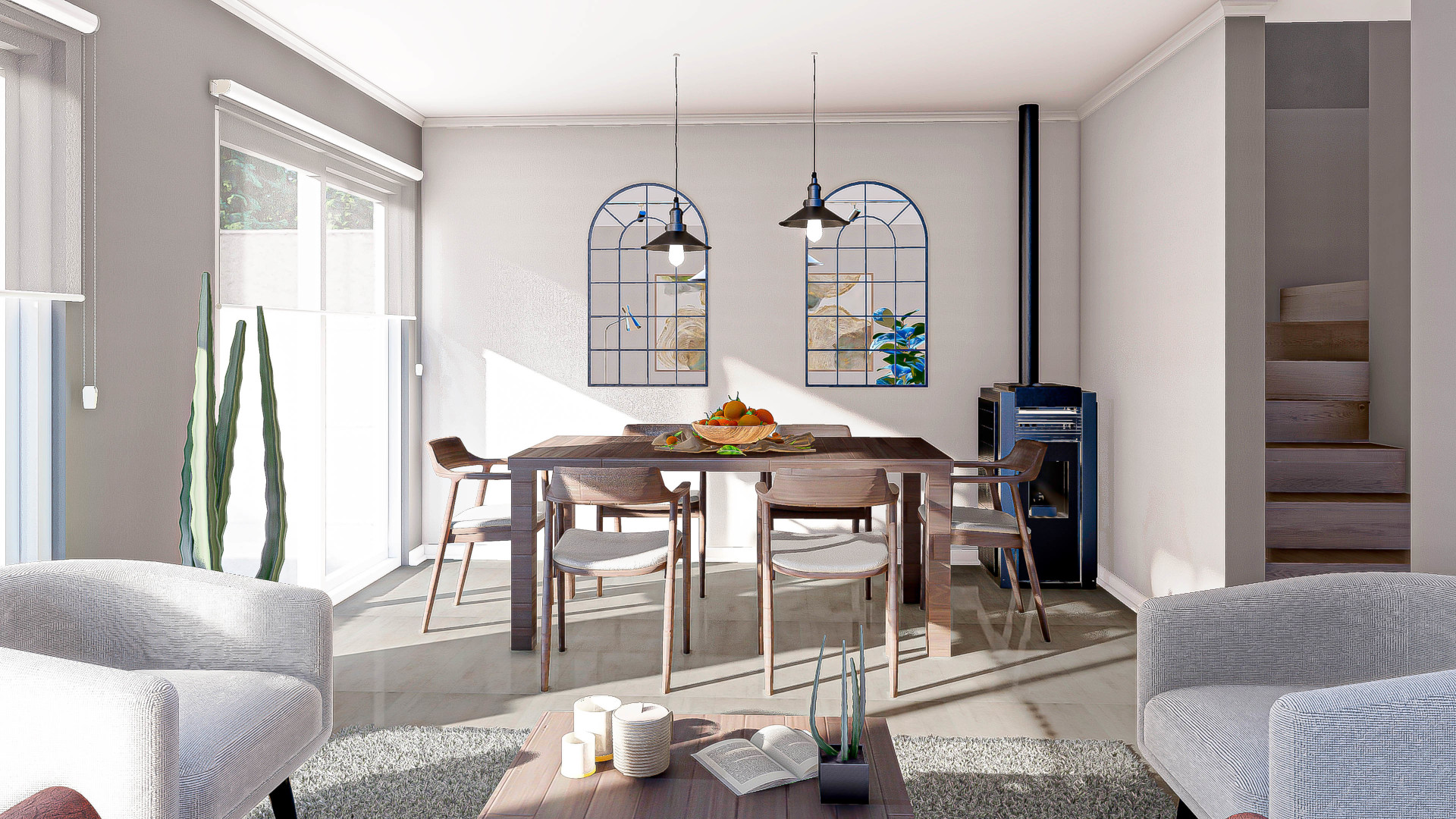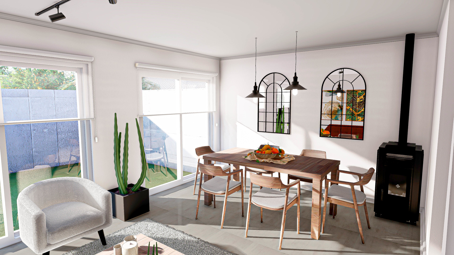 Respecto a las casas, se contempla una única tipología, que corresponde a una casa pareada de 93,5 m² construidos, en 2 pisos, con patio y 2 estacionamientos, estilo mediterráneo.